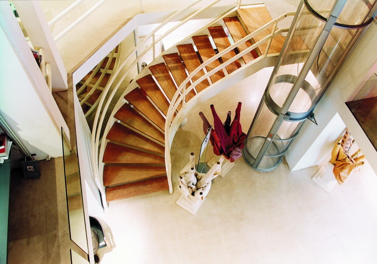 崇友實業自美國引進擁有世界專利的氣動梭,利用調節氣壓控制升降、完全不同於傳統電梯以鋼索牽引的驅動系統;省電省空間、不需搭建升降道及設置機坑等優點,非常符合地狹人稠的台灣住宅需求,相信必能突破很多建築侷限,賦予住宅電梯更多設計風貌。