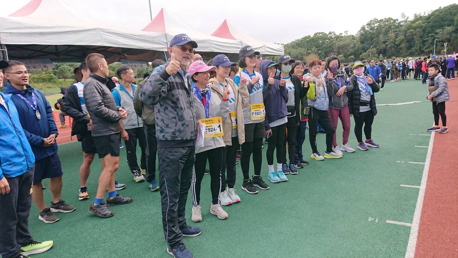 來至各單位的70名員工,十二月三日連同家眷,齊聚林口國立體育大學,參加由崇友贊助、中華民國馬拉松協會主辦的放電盃全國驛站接力聯賽最後一站比賽。