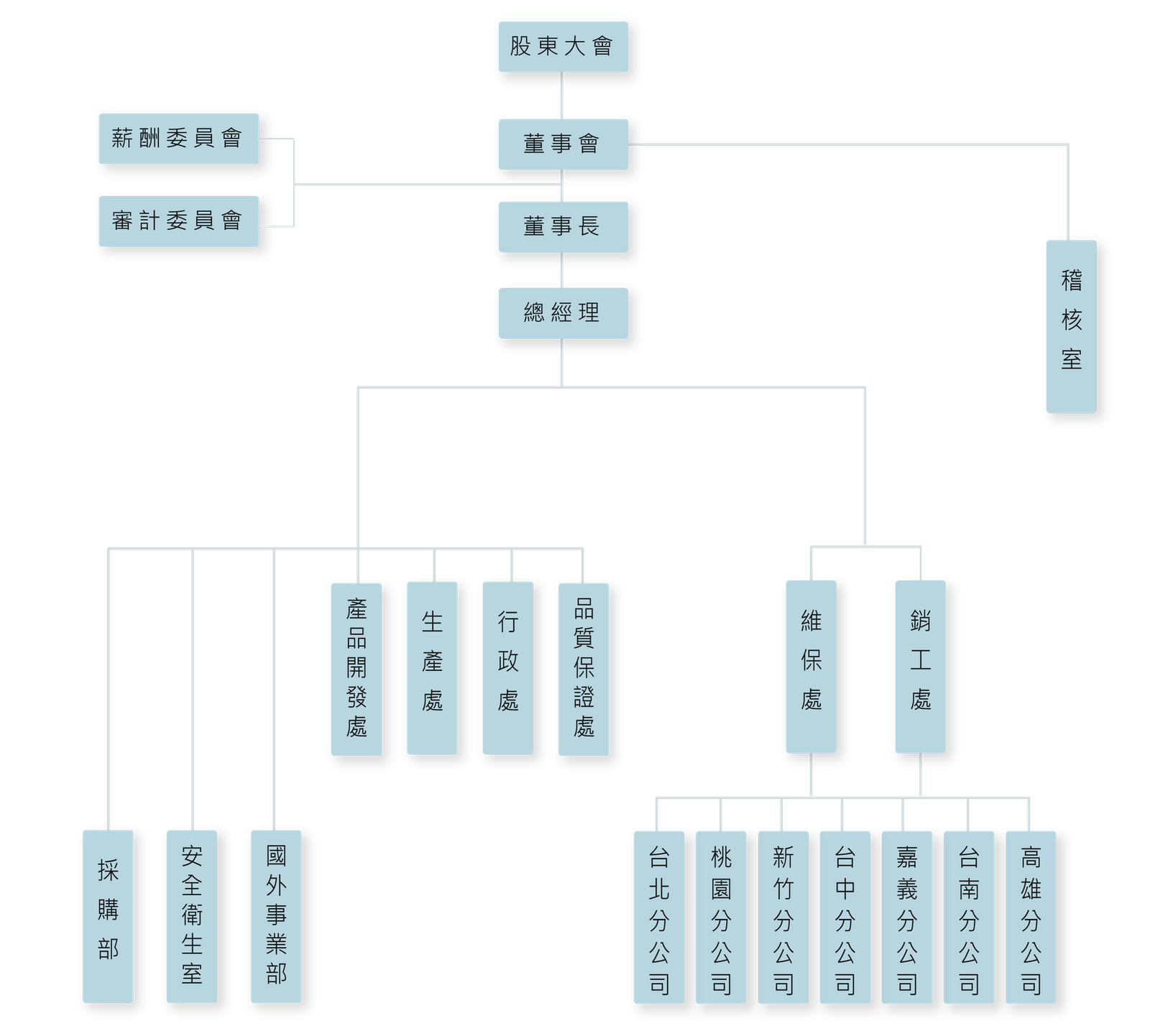 負責會計帳務、稅務、財務、預算之作業規劃及執行、資金調度及出納作業、成本會計作業。資產、公關、文書、檔案、庶務、環境、法務業務、股務等相關作業執行與管理。負責MIS之開發、維護及資訊安全制度等相關作業。人力資源政策規劃、制度執行及訓練發展、薪酬福利、招募任用之規劃管理與實施審核等相關作業。