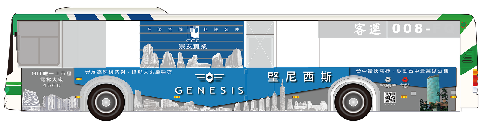 路上拍到「崇友堅尼西斯電梯系列」(通關密語)公車廣告,將相片及密語傳到Line崇友帳號(ID: @gfc4506),即可立獲一杯拿鐵咖啡禮序號(效期50天)在超商兌換。