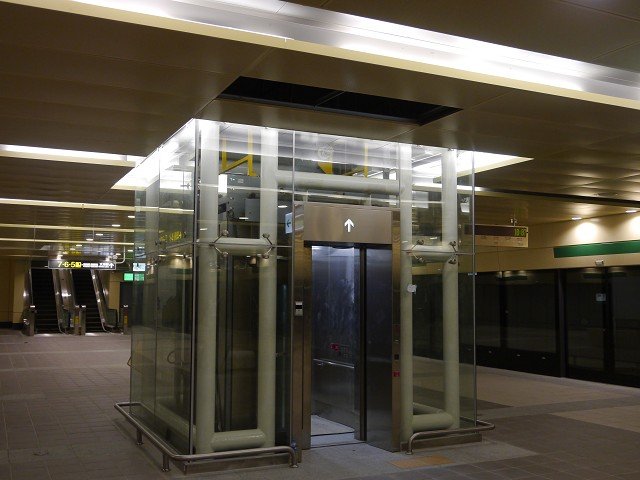 崇友實業為台北捷運松山線小巨蛋站、南京復興站提供9台電梯,52台電扶梯,總數共61台;圖為電梯外觀。