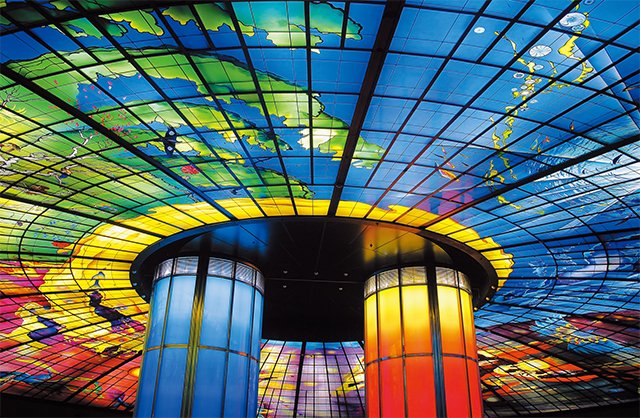 崇友實業為高雄捷運紅線和橘線37個車站,提供了315台電扶梯,最長電扶梯揚程為13.96公尺(生態園區站);圖為美麗島站-光之穹頂。