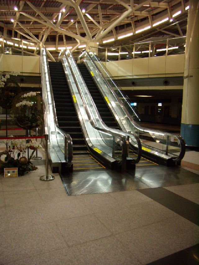 崇友實業為台灣高鐵桃園站提供10台電梯,12台電扶梯;為嘉義站提供3台電梯,6台電扶梯;總數共31台;圖為桃園站扶梯。