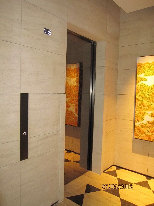 崇友實業為國美新美館大樓提供安全舒適的電梯運輸方案;圖為電梯乘場。