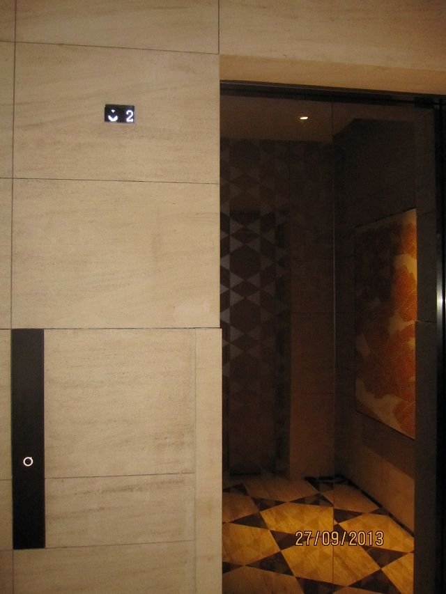 崇友實業為國美新美館大樓提供安全舒適適的電梯運輸方案;圖為電梯乘場與乘場指示器等。