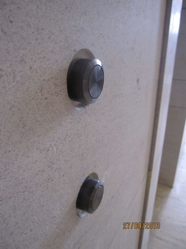 崇友實業為國美新美館大樓提供安全舒適的電梯運輸方案;圖為電梯乘場按鈕。