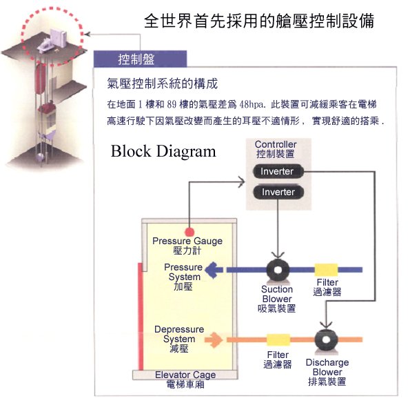最快速電梯也能提供最舒適的搭乘服務,在超高速運行下,車廂內豎立的硬幣也不會倒下,證明車廂內的振動幾近於0。