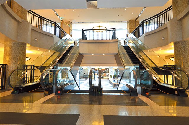 崇友實業為BELLAVITA 寶麗廣塲提供8台電梯,24台電扶梯,總數共32台;圖為電扶梯外觀。