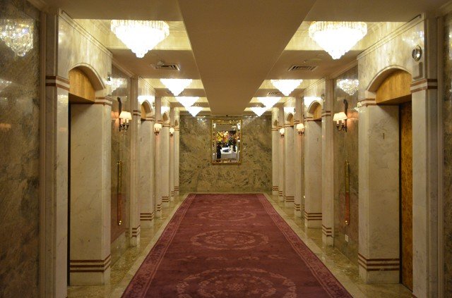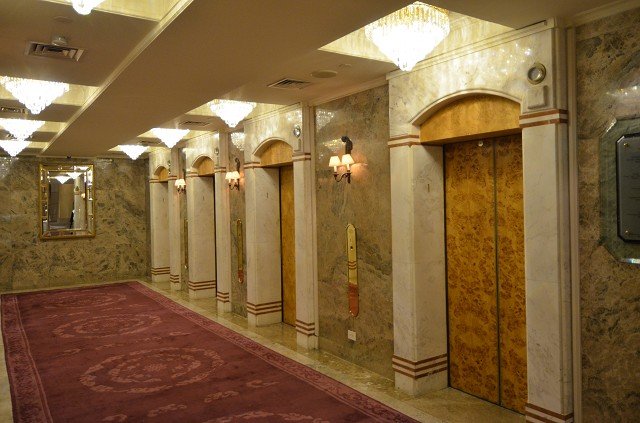 崇友實業為君悅大飯店提供19台電梯,8台扶梯;圖為電梯乘場。