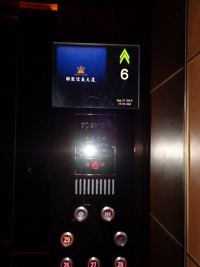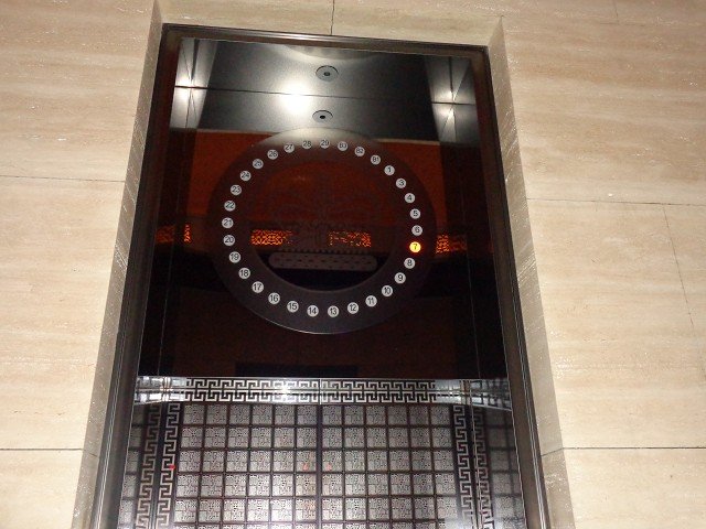 崇友實業為聯聚信義大提供3台電梯;圖為電梯車廂操作盤指示器。
