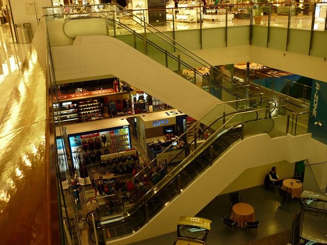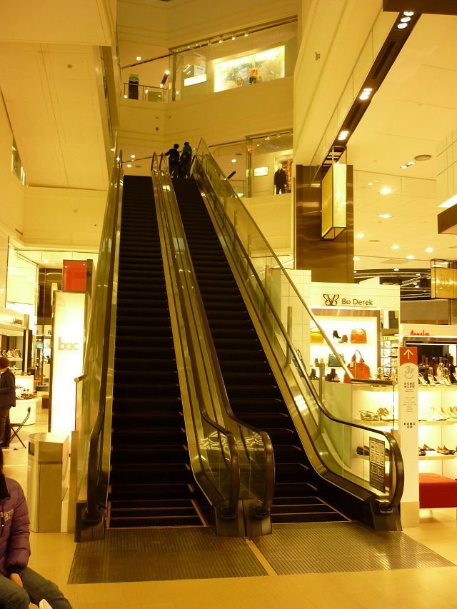 崇友實業為台茂購物中心提供50台扶梯及9台電梯;圖為商場電扶梯。