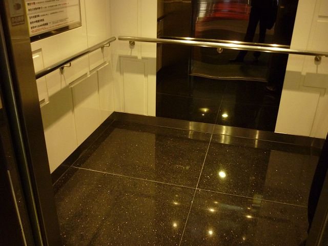 崇友實業為台茂購物中心提供50台扶梯及9台電梯;圖為電梯車廂地板。