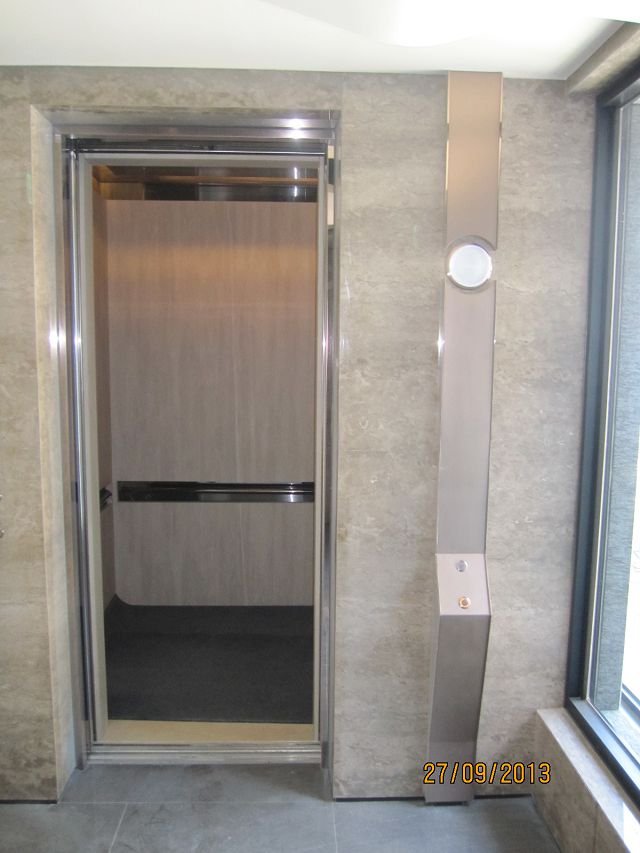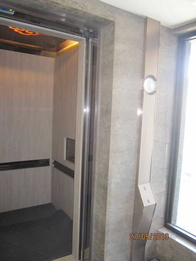 崇友實業為九野大樓提供安全舒適的電梯運輸方案;圖為電梯乘場廳燈。