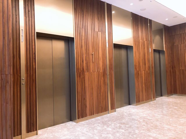 崇友實業為本案提供15台電梯;圖為辦公區乘場。