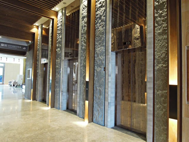 崇友實業為本案提供15台電梯;圖為電梯乘場。