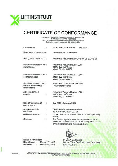 LIFTINSTITUUT 歐洲電梯協會合格證書