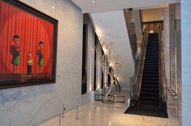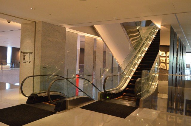 崇友實業為新光信義金融大樓暨寒舍艾美酒店提供22台電梯,4台電扶梯,總數共26台;圖為電扶梯。