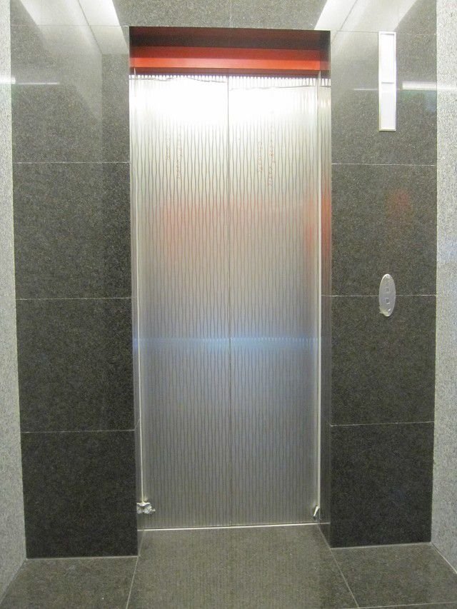 崇友實業為新光信義金融大樓暨寒舍艾美酒店提供22台電梯,4台電扶梯,總數共26台;圖為電梯乘場。
