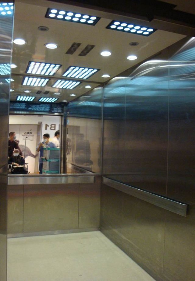 崇友實業為台大兒童醫提供19台電梯,4台扶梯;圖為電梯車廂。