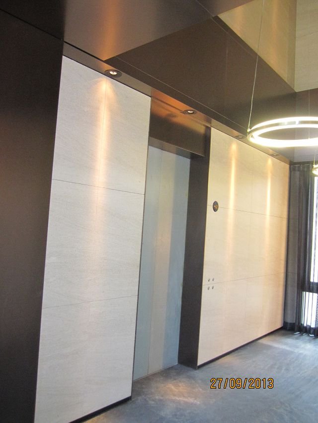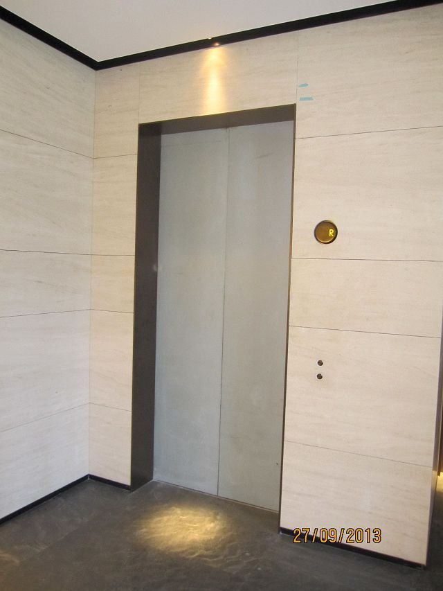 崇友實業為國美詠山大樓提供安全舒適的電梯運輸方案;圖為電梯乘場。