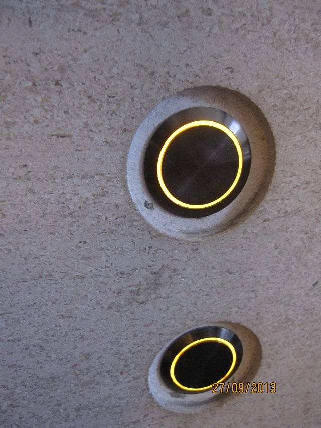 崇友實業為國美詠山大樓提供安全舒適的電梯運輸方案;圖為電梯乘場按鈕。