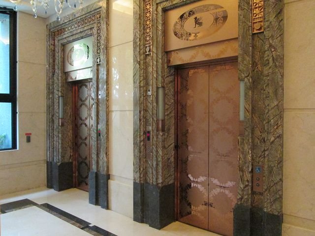 崇友實業為皇苑國際館大樓提供安全舒適的電梯運輸方案;圖為電梯外觀。