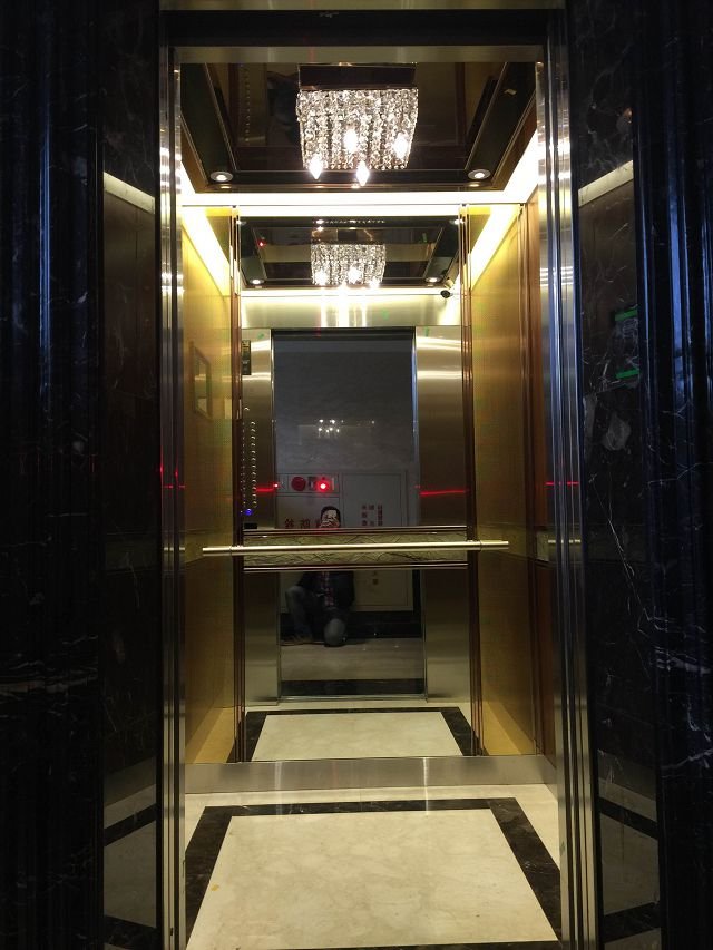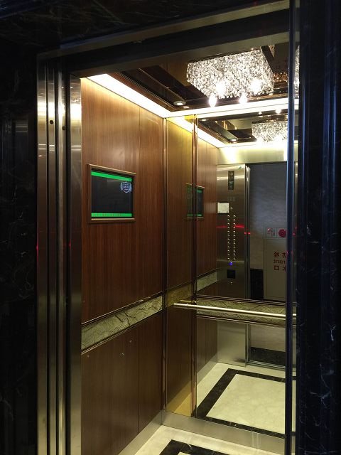 崇友實業為宏泰帝品苑大樓提供安全舒適的電梯運輸方案;圖為車廂內部。