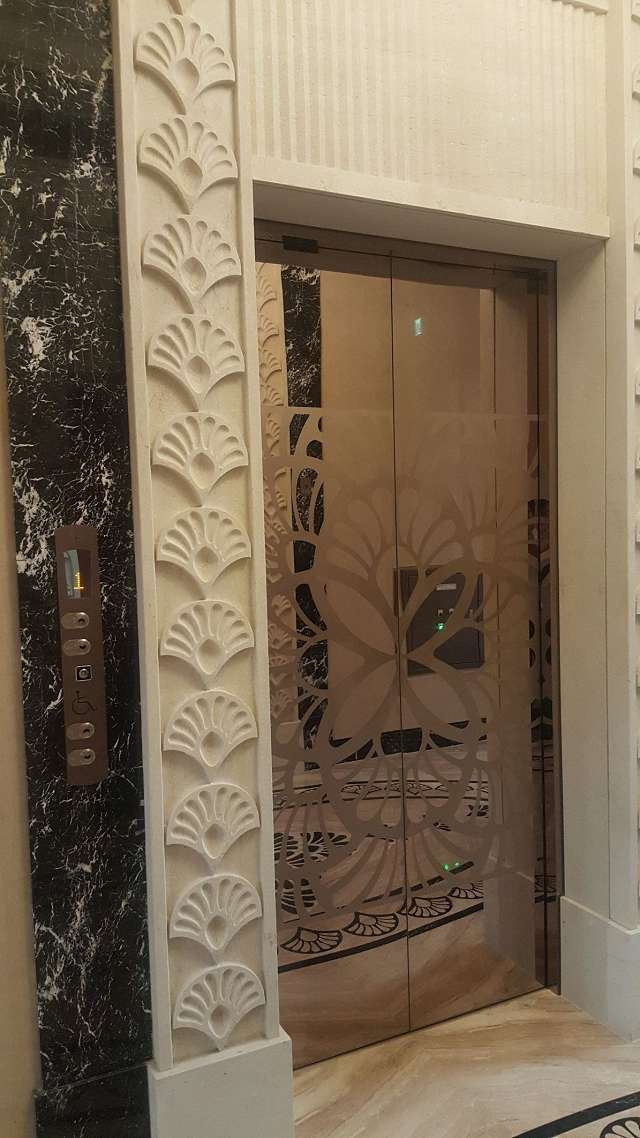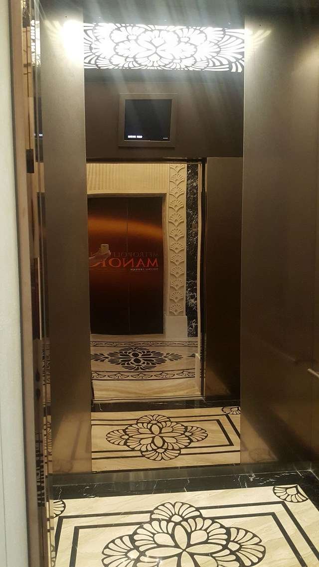崇友實業為悅龍莊大樓提供安全舒適的電梯運輸方案;圖為電梯車廂外觀。