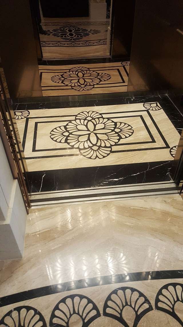 崇友實業為悅龍莊大樓提供安全舒適的電梯運輸方案;圖為電梯車廂地板。