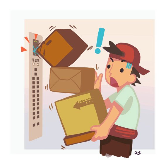 使用電梯搬運物品時,須避免碰撞電梯設備或擠壓門板,以防止門變形等故障情形。